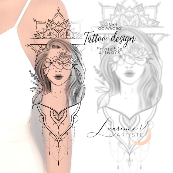 Instant Download Tattoo Design Lady Face Flower Floral Etsy